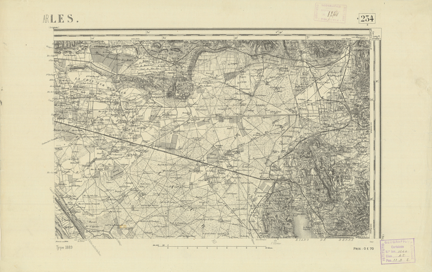 "Paris. Service Géographique de l'Armée, 1889. Ebbe origine dall'Edizione zincografica in quarti di foglio, stabilita dal 1879, per la carta detta de "L'Etat-Major". Infatti non rispondono più il sistema della riproduzione zincografica alle esigenze che la revisione dei fogli imponeva, per un inevitabile logoramento dei rami originali, fu proposta dapprima la correzione degli zinchi, ma questo, importando un lavoro lungo e gravoso, si adottò il procedimento galvanico. I rami galvanici ottenuti e corretti secondo questo sistema presero il nome di "édition type 1889". Allo scopo di facilitare l'incisione fu adoperata la suddivisione in quarti di foglio come per l'edizione zincografica. La revisione dei fogli di questo tipo non fu iniziata che nel 1893. Dal catalogo del S.G.A. risultano mancanti a questa edizione i dipartimenti della "Moselle", del "Bas-Rhin" e del "Haut-Rhin" per i quali non esiste che una edizione in fogli interi aggiornata nel 1901."