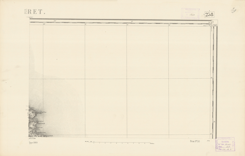 "Paris. Service Géographique de l'Armée, 1889. Ebbe origine dall'Edizione zincografica in quarti di foglio, stabilita dal 1879, per la carta detta de "L'Etat-Major". Infatti non rispondono più il sistema della riproduzione zincografica alle esigenze che la revisione dei fogli imponeva, per un inevitabile logoramento dei rami originali, fu proposta dapprima la correzione degli zinchi, ma questo, importando un lavoro lungo e gravoso, si adottò il procedimento galvanico. I rami galvanici ottenuti e corretti secondo questo sistema presero il nome di "édition type 1889". Allo scopo di facilitare l'incisione fu adoperata la suddivisione in quarti di foglio come per l'edizione zincografica. La revisione dei fogli di questo tipo non fu iniziata che nel 1893. Dal catalogo del S.G.A. risultano mancanti a questa edizione i dipartimenti della "Moselle", del "Bas-Rhin" e del "Haut-Rhin" per i quali non esiste che una edizione in fogli interi aggiornata nel 1901."