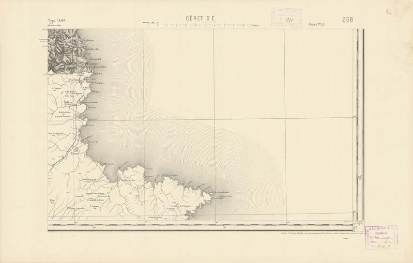"Paris. Service Géographique de l'Armée, 1889. Ebbe origine dall'Edizione zincografica in quarti di foglio, stabilita dal 1879, per la carta detta de "L'Etat-Major". Infatti non rispondono più il sistema della riproduzione zincografica alle esigenze che la revisione dei fogli imponeva, per un inevitabile logoramento dei rami originali, fu proposta dapprima la correzione degli zinchi, ma questo, importando un lavoro lungo e gravoso, si adottò il procedimento galvanico. I rami galvanici ottenuti e corretti secondo questo sistema presero il nome di "édition type 1889". Allo scopo di facilitare l'incisione fu adoperata la suddivisione in quarti di foglio come per l'edizione zincografica. La revisione dei fogli di questo tipo non fu iniziata che nel 1893. Dal catalogo del S.G.A. risultano mancanti a questa edizione i dipartimenti della "Moselle", del "Bas-Rhin" e del "Haut-Rhin" per i quali non esiste che una edizione in fogli interi aggiornata nel 1901."