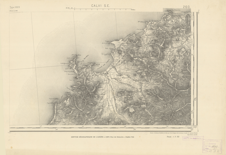 "Paris. Service Géographique de l'Armée, 1889. Ebbe origine dall'Edizione zincografica in quarti di foglio, stabilita dal 1879, per la carta detta de "L'Etat-Major". Infatti non rispondono più il sistema della riproduzione zincografica alle esigenze che la revisione dei fogli imponeva, per un inevitabile logoramento dei rami originali, fu proposta dapprima la correzione degli zinchi, ma questo, importando un lavoro lungo e gravoso, si adottò il procedimento galvanico. I rami galvanici ottenuti e corretti secondo questo sistema presero il nome di "édition type 1889". Allo scopo di facilitare l'incisione fu adoperata la suddivisione in quarti di foglio come per l'edizione zincografica. La revisione dei fogli di questo tipo non fu iniziata che nel 1893. Dal catalogo del S.G.A. risultano mancanti a questa edizione i dipartimenti della "Moselle", del "Bas-Rhin" e del "Haut-Rhin" per i quali non esiste che una edizione in fogli interi aggiornata nel 1901."