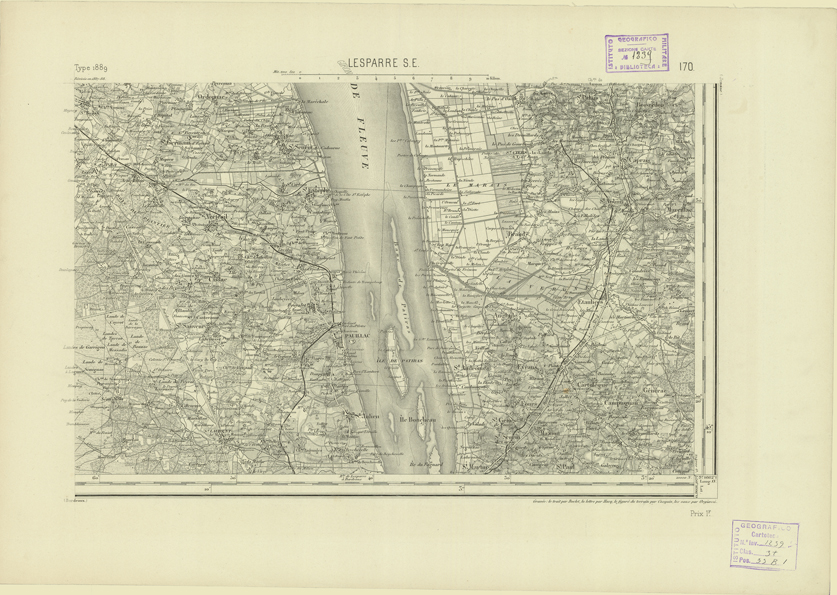 "stabilita fino dal 1879, per la Carta detta de "L'etat-Major". Infatti non rispondendo più il sistema della riproduzione zincografica alle esigenze che la revisione dei fogli imponeva per un inevitabile logoramento dei rami originali, fu proposta dapprima la correzione degli zinchi, ma questo, importando un lavoro lungo e gravoso, si adottò il procedimento galvanico. I rami galvanici ottenuti e corretti secondo questo sistema presero il nome di "édition type 1889". Allo scopo di facilitare l'incisione fu adoperata la suddivisione in quarti di foglio come per l'edizione zincografica. la revisione dei fogli di questo tipo nnn fu iniziata che nel 1893. Dal catalogo del S.G.A. risultano mancanti a questa edizione i dipartimenti della "Moselle", del "Bas-Rhin" e del "Haut-Rhin" per le quali non esiste che una edizione in fogli interi aggiornata nel 1901."