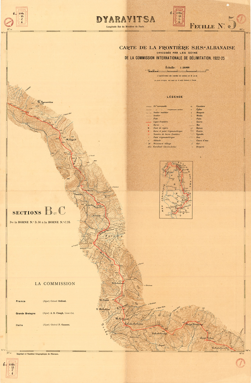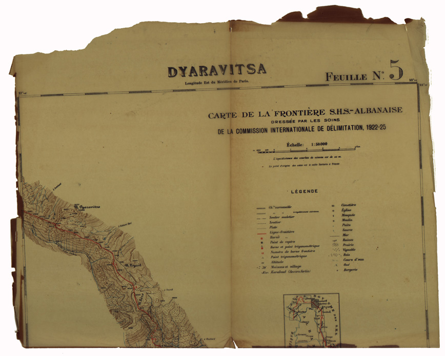 CARTE DE LA FRONTIERE S.H.S.-ALBANAISE DRESSEE PAR LES SOINS DE LA COMMISSION INTERNATIONALE DE DELIMITATION