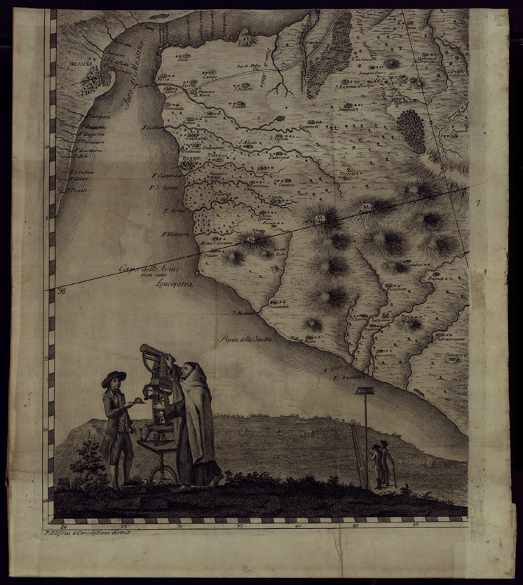 "Carta corografica della calabria Ulteriore. Tipo di stampa incisione su rame. Grafia in lingua italiana. Autore: Padre Eliseo della Concezione (al secolo Francesco Mango) inc. Francesco Progenie. Napoli - S.N.- 1784"