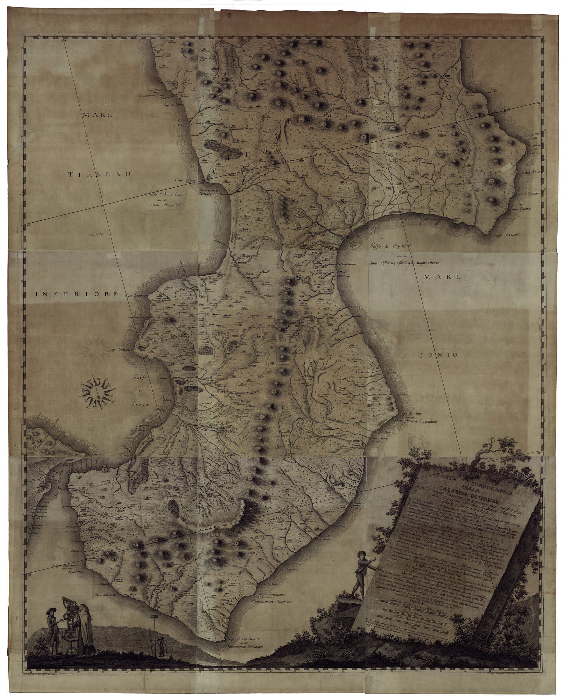 "Carta corografica della calabria Ulteriore. Tipo di stampa incisione su rame. Grafia in lingua italiana. Autore: Padre Eliseo della Concezione (al secolo Francesco Mango) inc. Francesco Progenie. Napoli - S.N.- 1784"