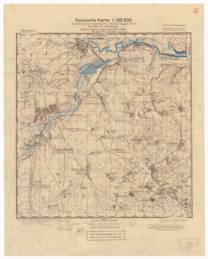 RUSSIA - RUSSISCHE KARTE (RIPRODUZIONE TEDESCA DELLA CARTA ORIGINALE DELLO S.M. DELL'ESERCITO ROSSO) Foglio M-37-43 Ostrogoshsk