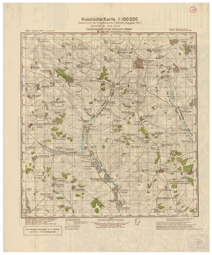 RUSSIA - RUSSISCHE KARTE (RIPRODUZIONE TEDESCA DELLA CARTA ORIGINALE DELLO S.M. DELL'ESERCITO ROSSO) Foglio M-37-55 Karpenkowo