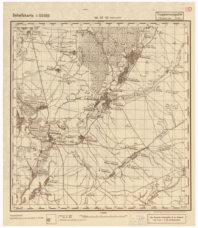 RUSSIA - RUSSISCHE KARTE (RIPRODUZIONE TEDESCA DELLA CARTA ORIGINALE DELLO S.M. DELL'ESERCITO ROSSO) Foglio M-37-57 Pawlowsk