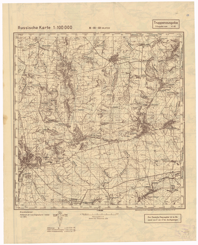 RUSSIA - RUSSISCHE KARTE (RIPRODUZIONE TEDESCA DELLA CARTA ORIGINALE DELLO S.M. DELL'ESERCITO ROSSO) Foglio M-37-59 Kalatsch