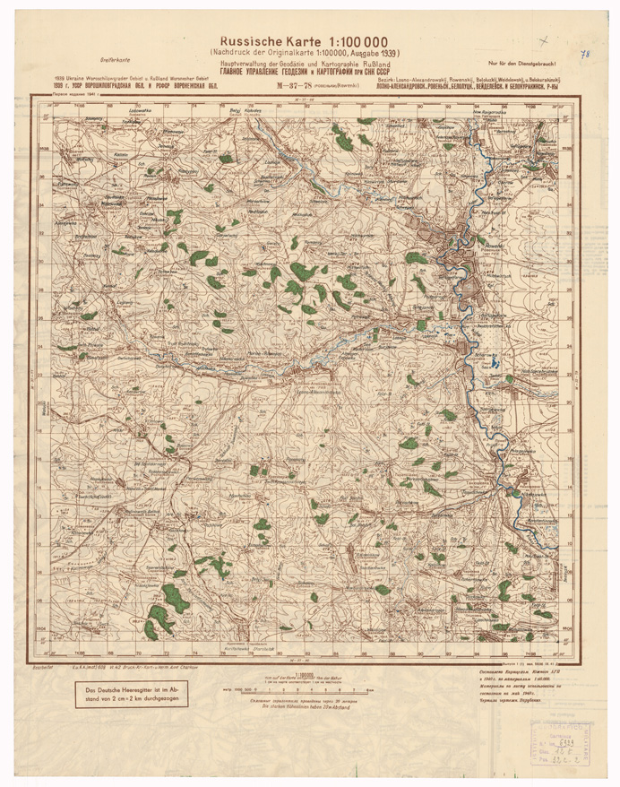 RUSSIA - RUSSISCHE KARTE (RIPRODUZIONE TEDESCA DELLA CARTA ORIGINALE DELLO S.M. DELL'ESERCITO ROSSO) Foglio M-37-78 Rowenki