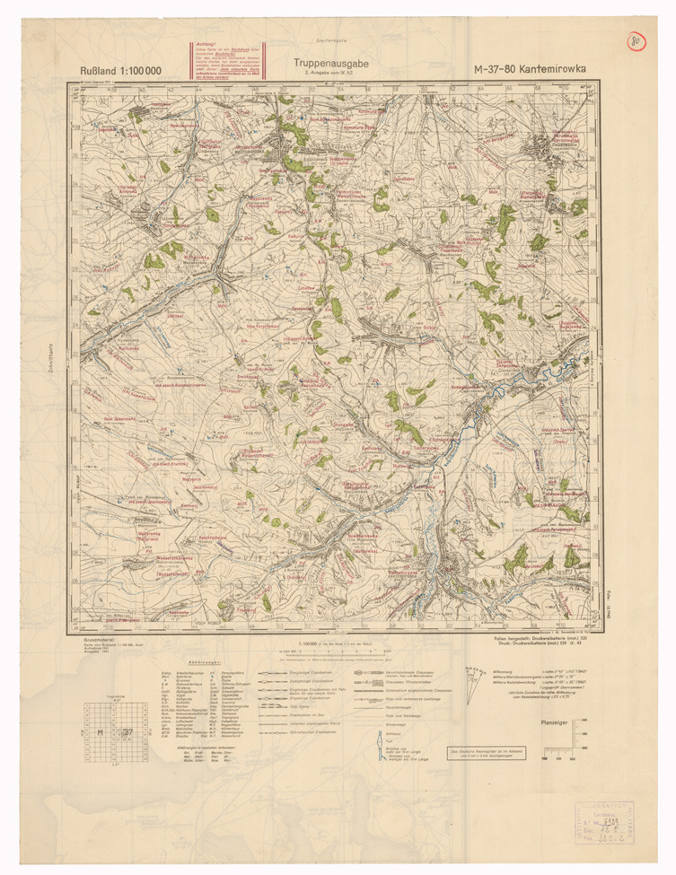 RUSSIA - RUSSISCHE KARTE (RIPRODUZIONE TEDESCA DELLA CARTA ORIGINALE DELLO S.M. DELL'ESERCITO ROSSO) Foglio M-37-80 Kantemirowka