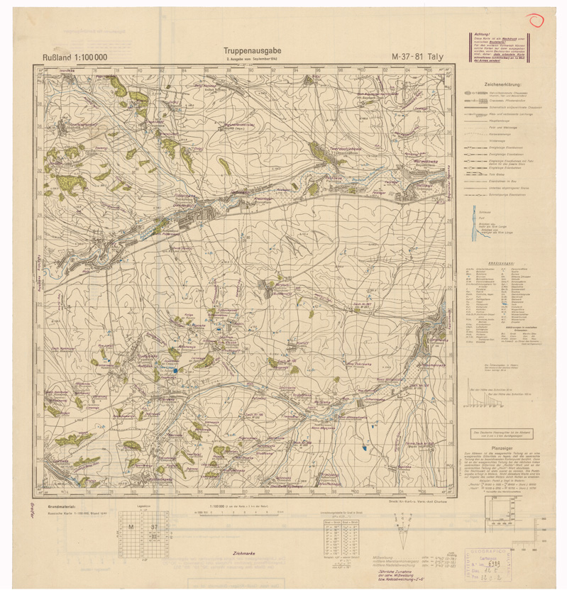 RUSSIA - RUSSISCHE KARTE (RIPRODUZIONE TEDESCA DELLA CARTA ORIGINALE DELLO S.M. DELL'ESERCITO ROSSO) Foglio M-37-81 Taly
