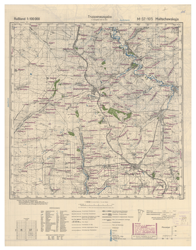RUSSIA - RUSSISCHE KARTE (RIPRODUZIONE TEDESCA DELLA CARTA ORIGINALE DELLO S.M. DELL'ESERCITO ROSSO) Foglio M-37-105 Maltschewskaja