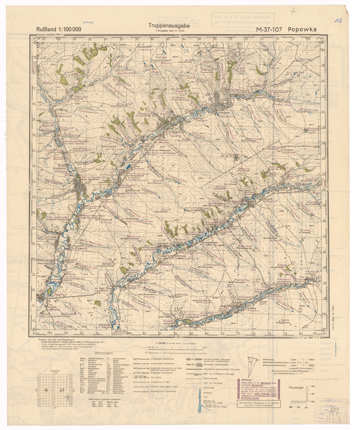 RUSSIA - RUSSISCHE KARTE (RIPRODUZIONE TEDESCA DELLA CARTA ORIGINALE DELLO S.M. DELL'ESERCITO ROSSO) Foglio M-37-107 Popowka
