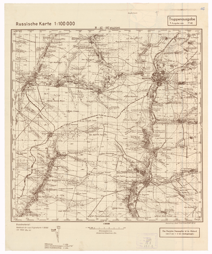 RUSSIA - RUSSISCHE KARTE (RIPRODUZIONE TEDESCA DELLA CARTA ORIGINALE DELLO S.M. DELL'ESERCITO ROSSO) Foglio M-37-117 Millerowo