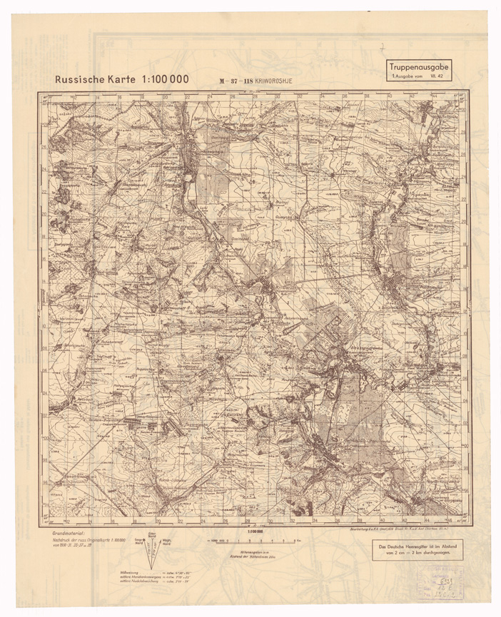 RUSSIA - RUSSISCHE KARTE (RIPRODUZIONE TEDESCA DELLA CARTA ORIGINALE DELLO S.M. DELL'ESERCITO ROSSO) Foglio M-37-118 Kriworoshje