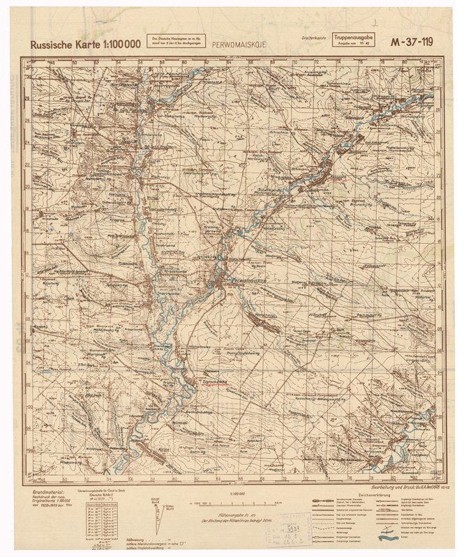 RUSSIA - RUSSISCHE KARTE (RIPRODUZIONE TEDESCA DELLA CARTA ORIGINALE DELLO S.M. DELL'ESERCITO ROSSO) Foglio M-37-119 Perwomaiskoje