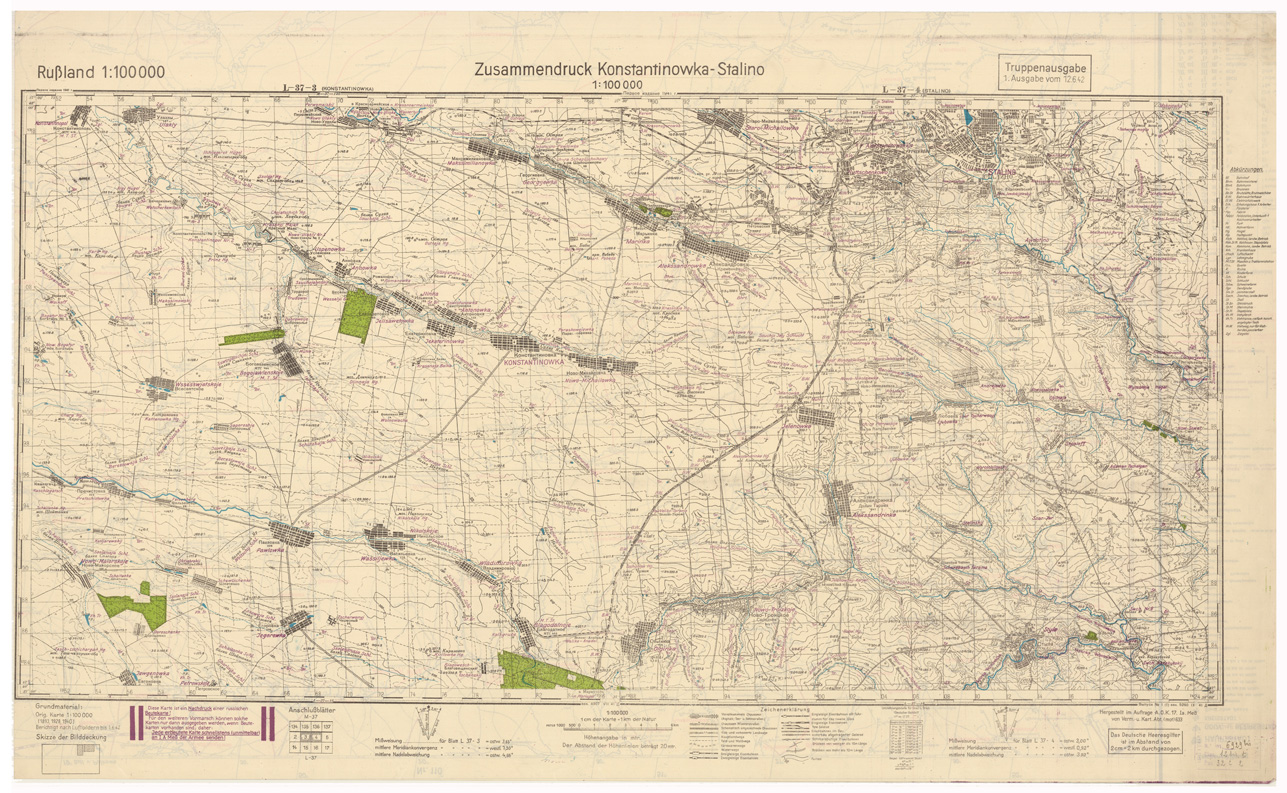 RUSSIA - RUSSISCHE KARTE (RIPRODUZIONE TEDESCA DELLA CARTA ORIGINALE DELLO S.M. DELL'ESERCITO ROSSO) Foglio L-37-3 Kostantinowha, Foglio L-37-4 Stalino