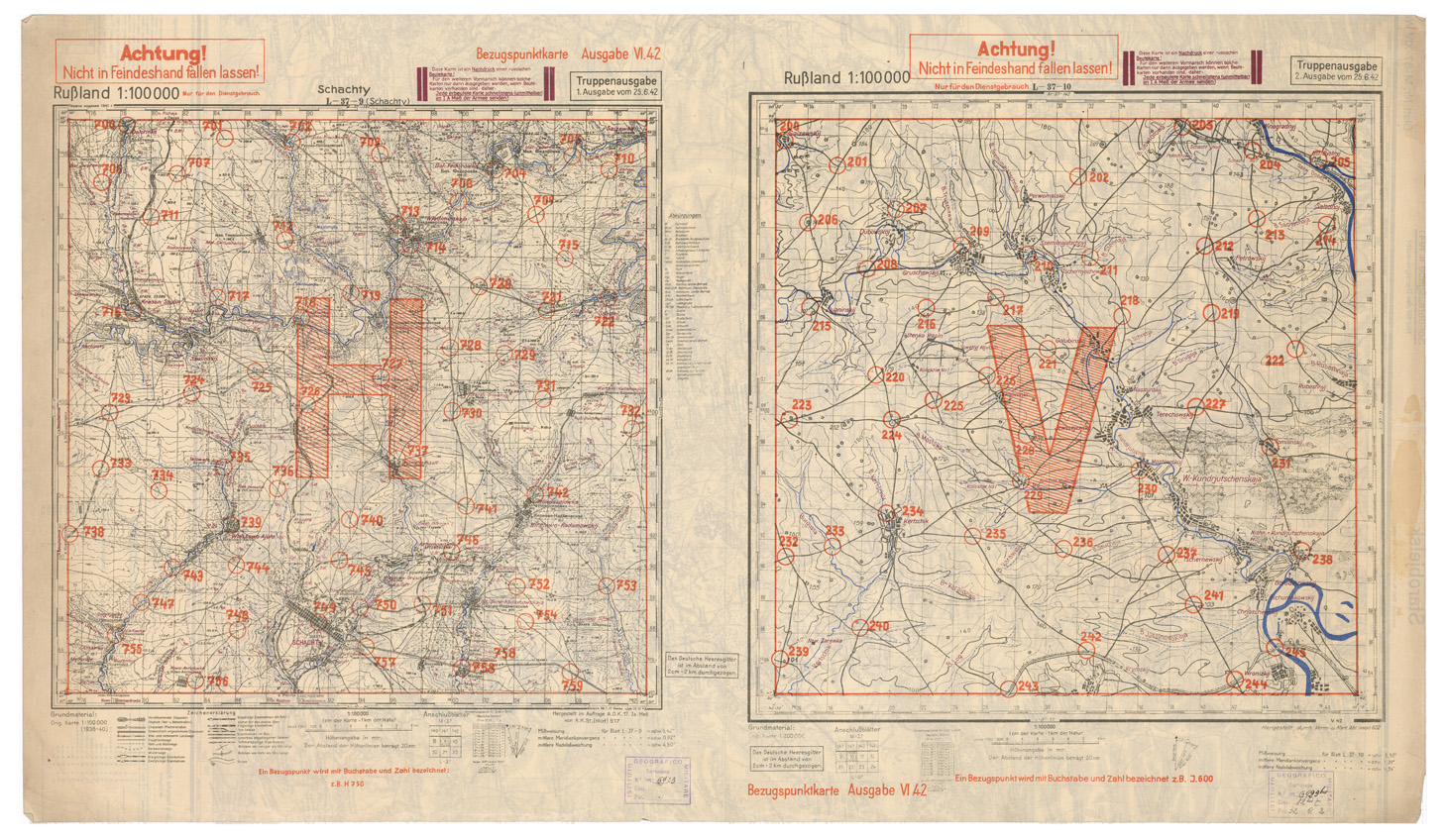 RUSSIA - RUSSISCHE KARTE (RIPRODUZIONE TEDESCA DELLA CARTA ORIGINALE DELLO S.M. DELL'ESERCITO ROSSO) Foglio L-37-9 Schachty, Foglio L-37-10 Kertschik