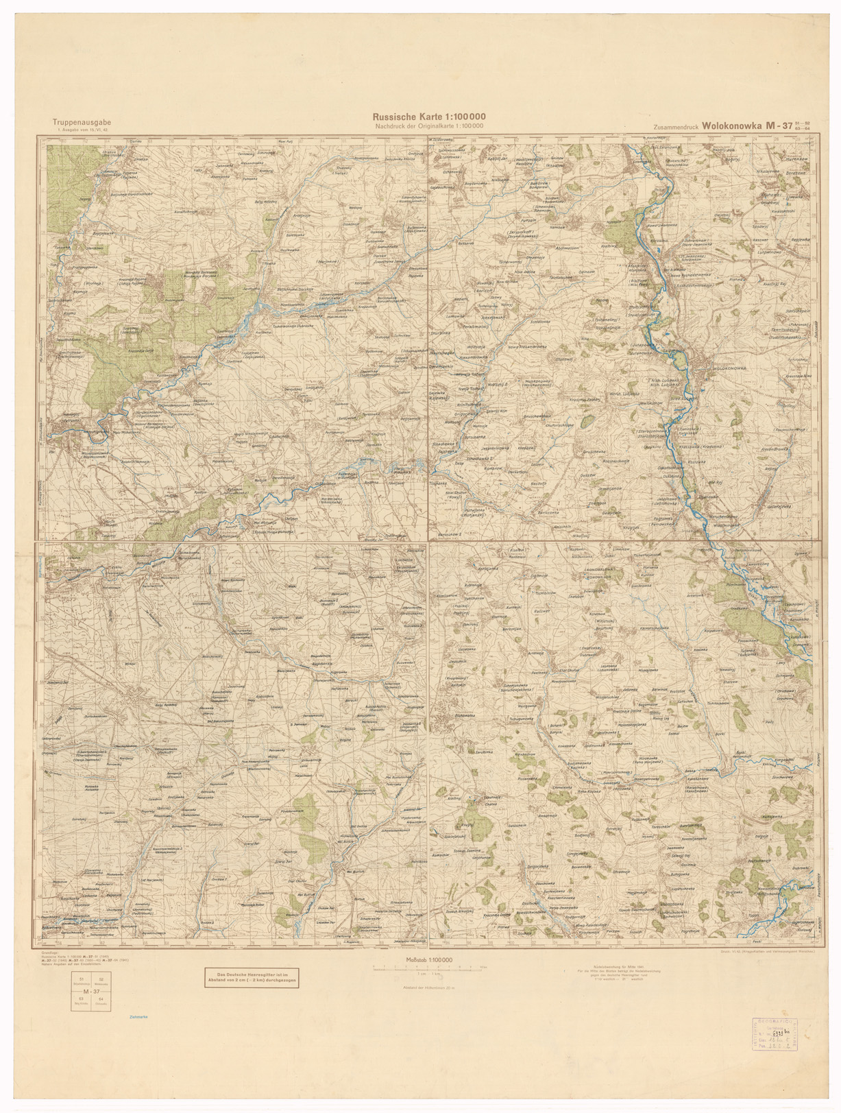 RUSSIA - RUSSISCHE KARTE (RIPRODUZIONE TEDESCA DELLA CARTA ORIGINALE DELLO S.M. DELL'ESERCITO ROSSO) Foglio M-37-51,52,63,64 Wolokonowka
