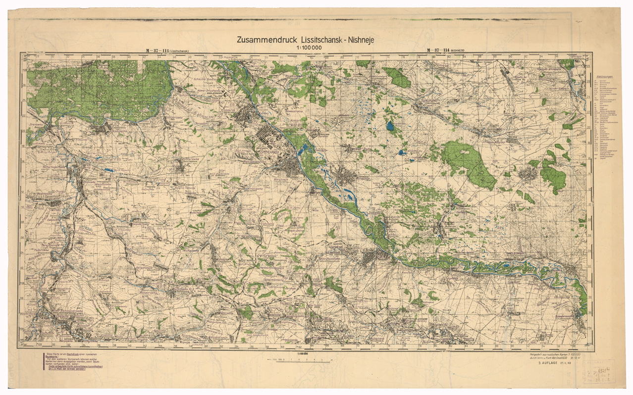 RUSSIA - RUSSISCHE KARTE (RIPRODUZIONE TEDESCA DELLA CARTA ORIGINALE DELLO S.M. DELL'ESERCITO ROSSO) Foglio M-37-113 Lissitschansk, Foglio M-37-114 Nishneje
