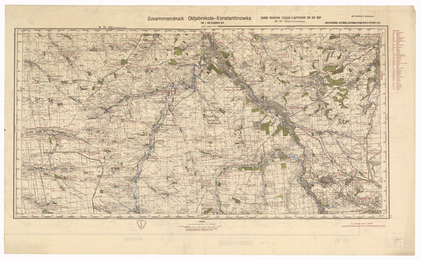 RUSSIA - RUSSISCHE KARTE (RIPRODUZIONE TEDESCA DELLA CARTA ORIGINALE DELLO S.M. DELL'ESERCITO ROSSO) Foglio M-37-123 Oktjabrskoje, Foglio M-37-124 Konstantinowka