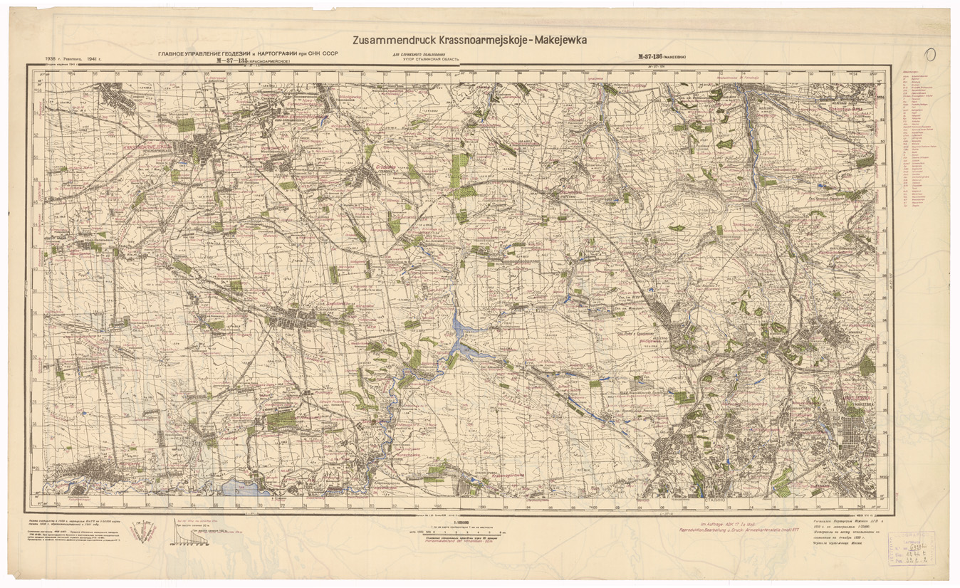 RUSSIA - RUSSISCHE KARTE (RIPRODUZIONE TEDESCA DELLA CARTA ORIGINALE DELLO S.M. DELL'ESERCITO ROSSO) Foglio M-37-135 Krassnoarmejskoje, Foglio M-37-136 Makejewka
