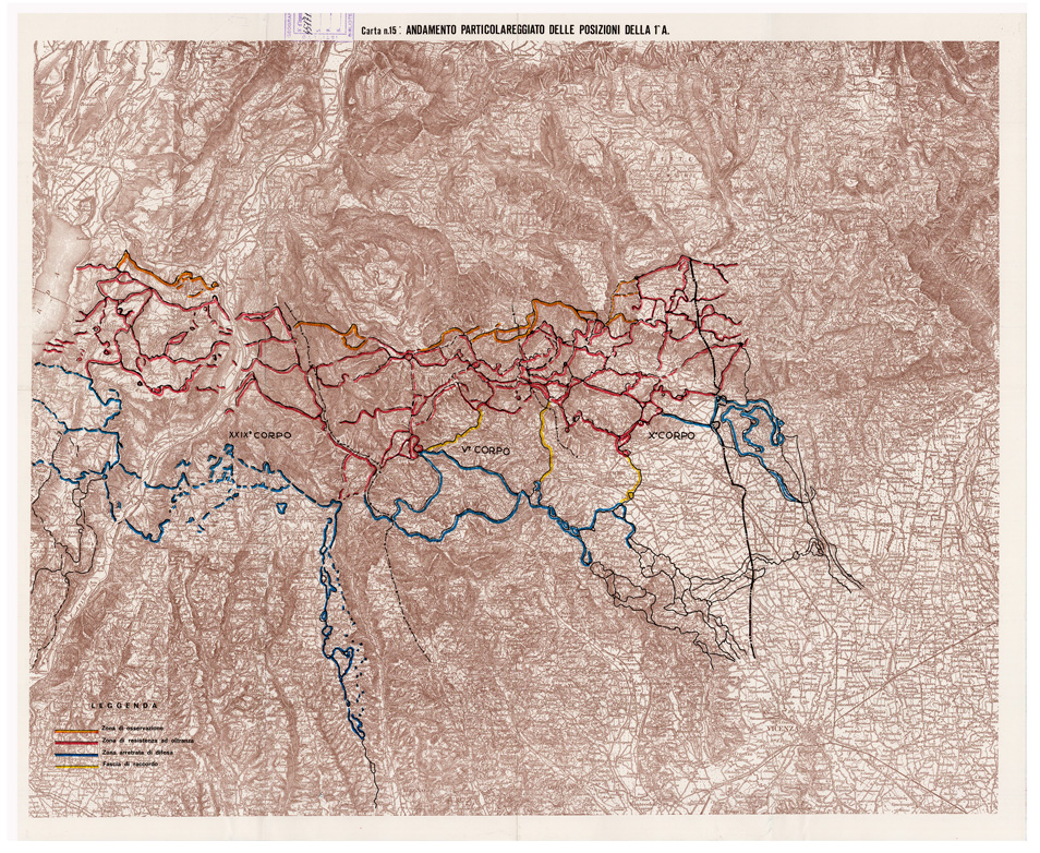 L'ESERCITO ITALIANO NELLA GRANDE GUERRA (1915-1918) - Carta n. 15: ANDAMENTO PARTICOLAREGGIATO DELLE POSIZIONI DELLA 1^ A