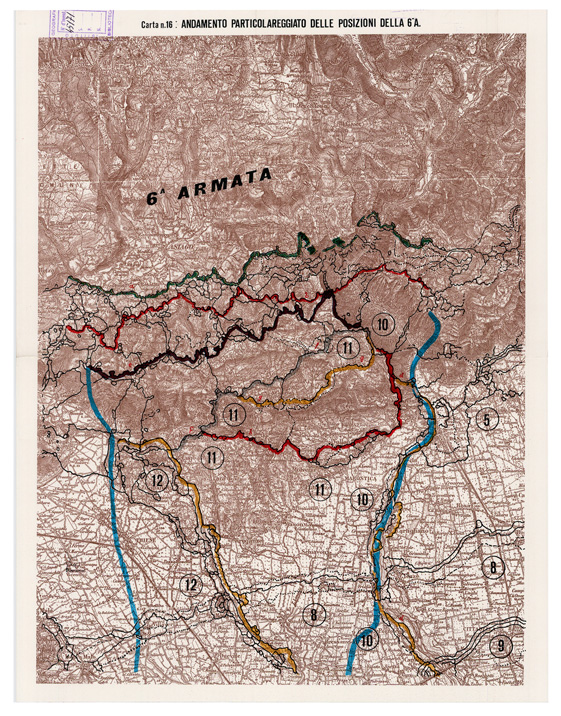 L'ESERCITO ITALIANO NELLA GRANDE GUERRA (1915-1918) - Carta n. 16: ANDAMENTO PARTICOLAREGGIATO DELLE POSIZIONI DELLA 6^ A.