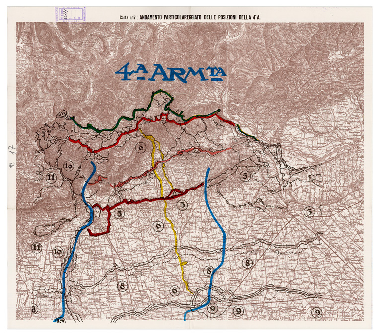 L'ESERCITO ITALIANO NELLA GRANDE GUERRA (1915-1918) - Carta n. 17: ANDAMENTO PARTICOLAREGGIATO DELLE POSIZIONI DELLA 4^ A