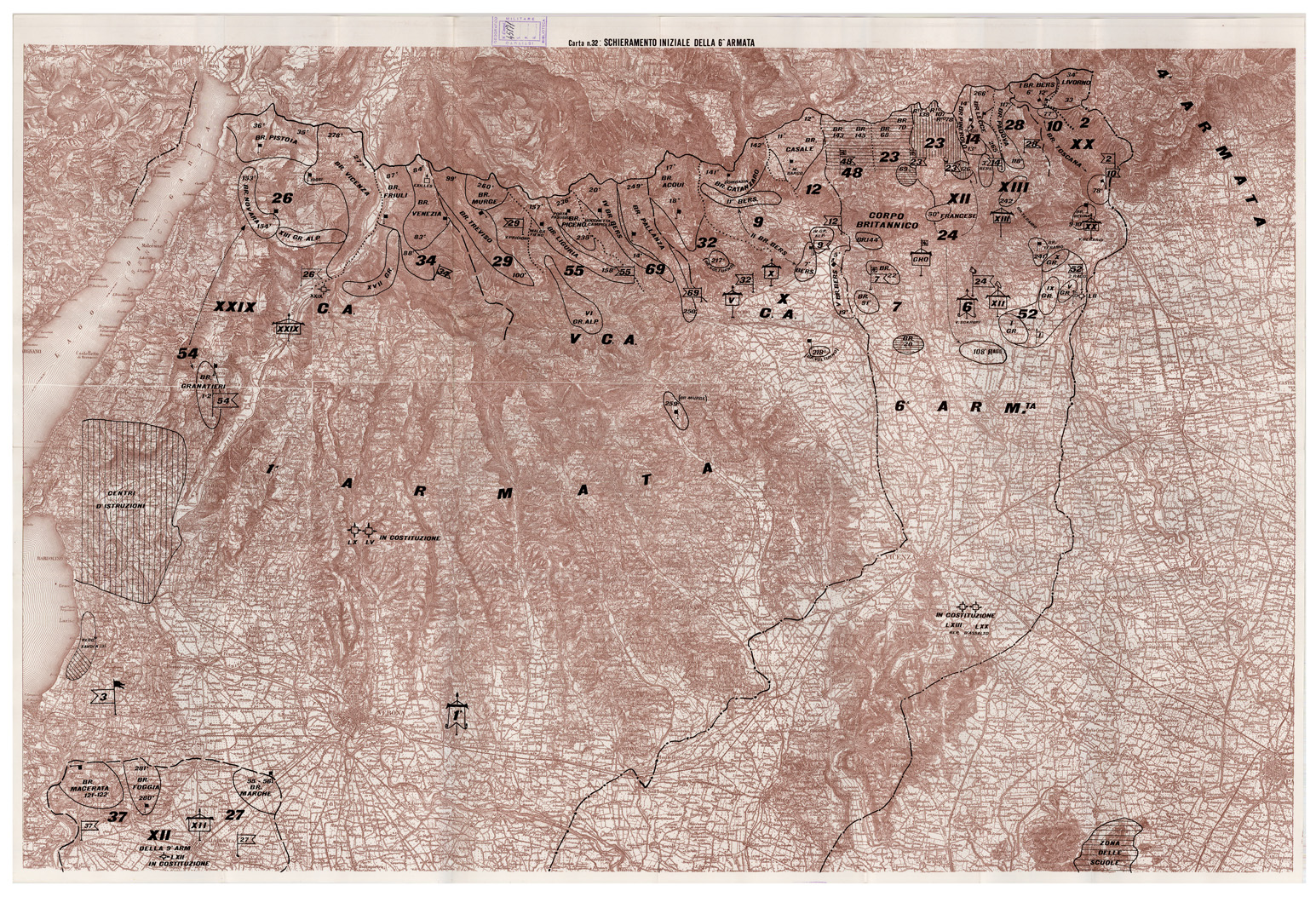 L'ESERCITO ITALIANO NELLA GRANDE GUERRA (1915-1918) - Carta n. 32: SCHIERAMENTO INIZIALE DELLA 6^ ARMATA