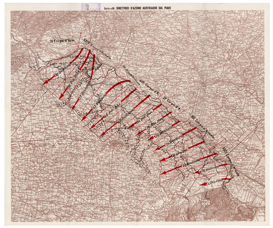 L'ESERCITO ITALIANO NELLA GRANDE GUERRA (1915-1918) - Carta n. 36: DIRETTRICI D'AZIONE AUSTRIACHE SUL PIAVE