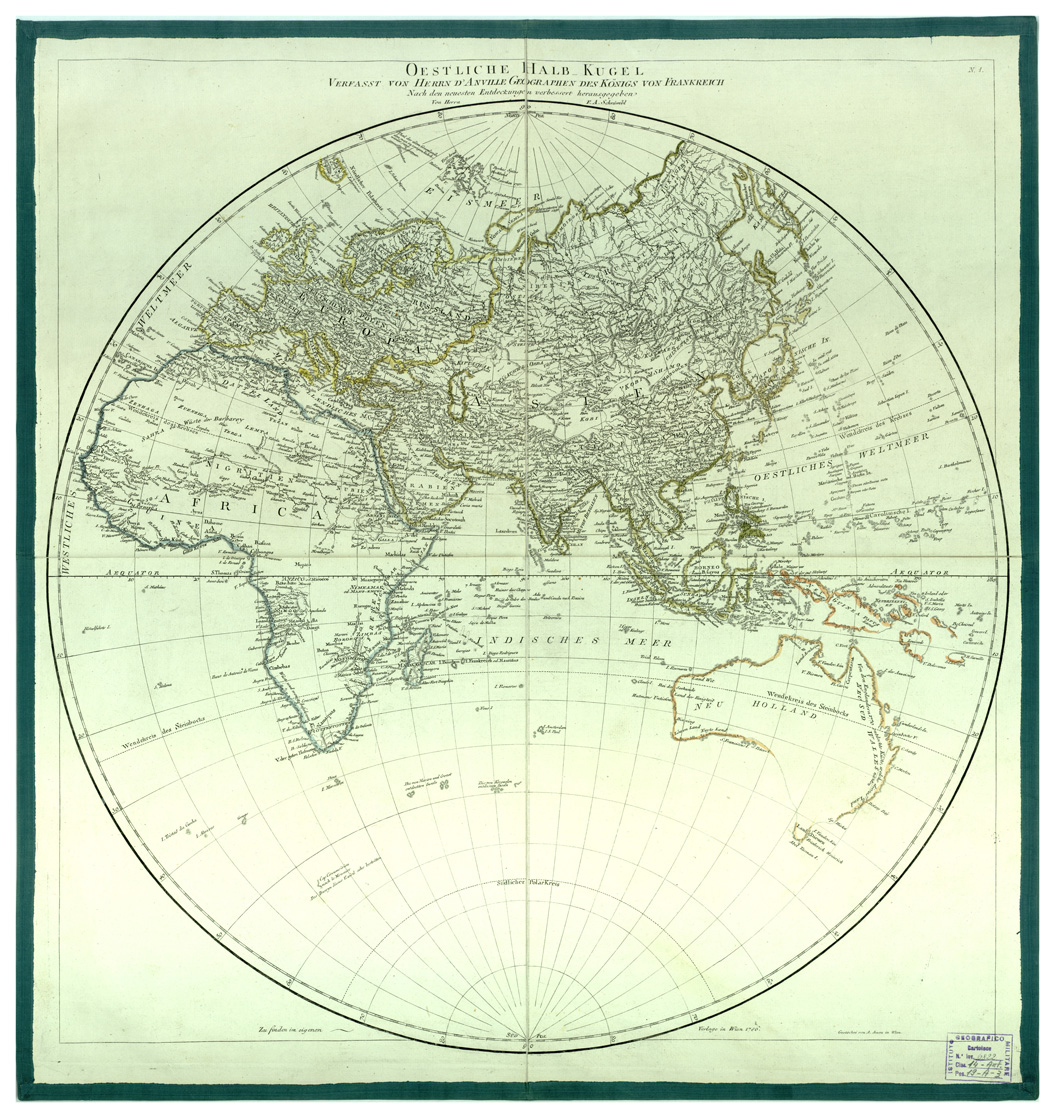"(senza scala) Autore:Von Hern F.A. Schambl Fogli 3 su tela a stacchi Incisione su rame con colorazione a mano Rappr.Orogr. Planimetrica Inv. SBN 7-6822/1"