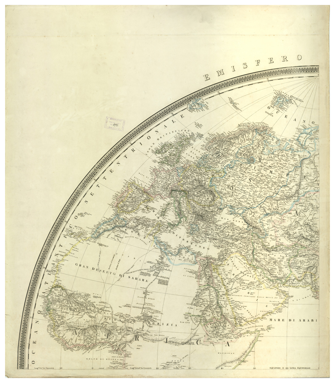 CARTE DEL MONDO - MAPPAMONDO COSTRUTTO SU QUELLO DI GARDNER ACCRESCIUTO DI TUTTE LE NUOVE SCOPERTE E DEDICATO A FERDINANDO II RE DEL REGNO DELLE DUE SICILIE - EMISFERO ORIENTALE - FOGLIO 2