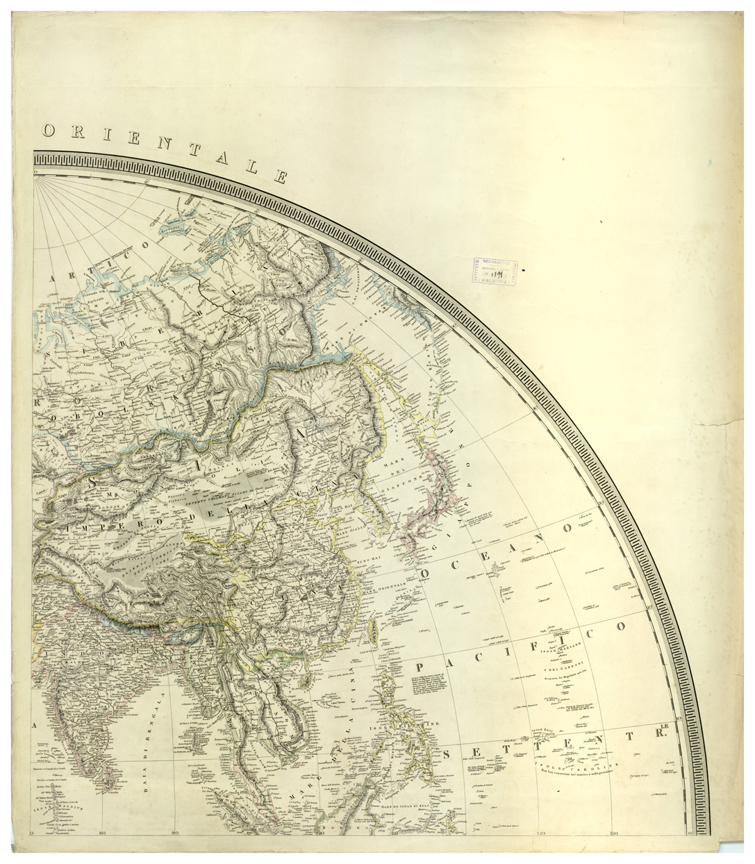 CARTE DEL MONDO - MAPPAMONDO COSTRUTTO SU QUELLO DI GARDNER ACCRESCIUTO DI TUTTE LE NUOVE SCOPERTE E DEDICATO A FERDINANDO II RE DEL REGNO DELLE DUE SICILIE - EMISFERO ORIENTALE - FOGLIO 1
