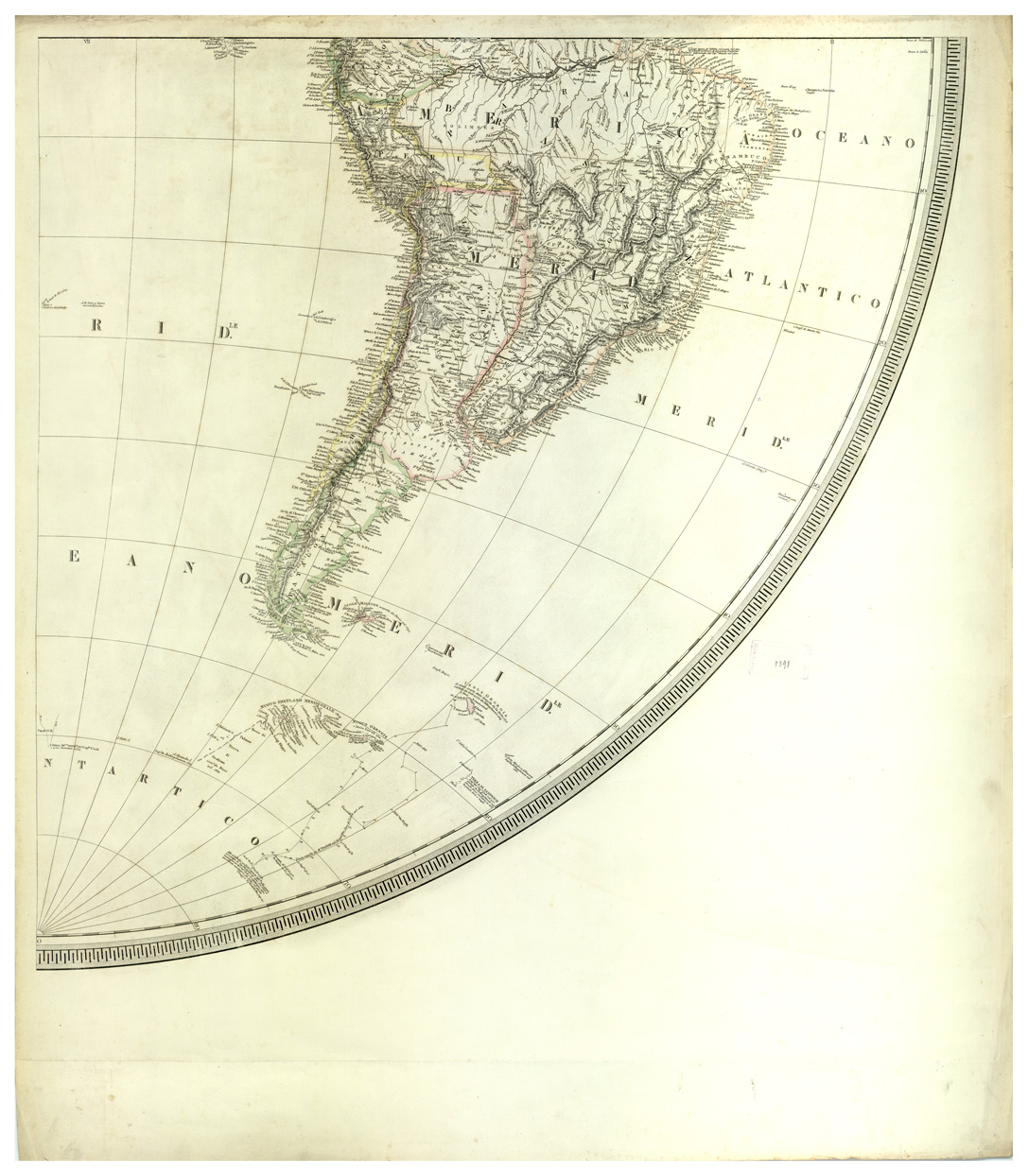 CARTE DEL MONDO - MAPPAMONDO COSTRUTTO SU QUELLO DI GARDNER ACCRESCIUTO DI TUTTE LE NUOVE SCOPERTE E DEDICATO A FERDINANDO II RE DEL REGNO DELLE DUE SICILIE - EMISFERO OCCIDENTALE - FOGLIO 7