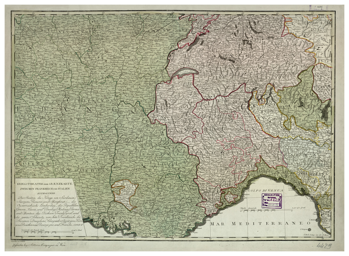 EUROPA - KRIEGSKARTHEATER ODER GRAENZKARTE ZWISCHEN FRANKREICH UN ITALIEN
