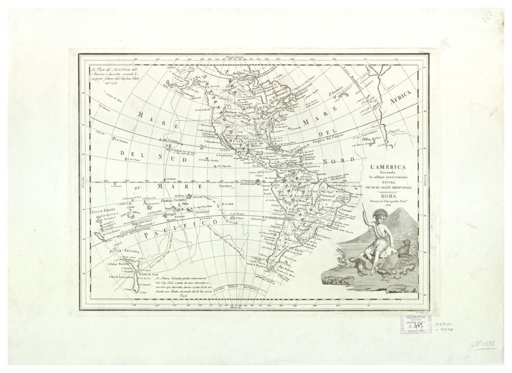 "AMERICA – CALCOGRAFIA CAMERALE (senza scala, senza autore) Inventario SBN 7-46701"