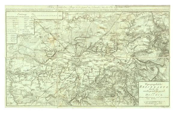 GERMANIA -TOPOGRAPHISCHE REISE KARTE DURCH DIE UMLIE GENDE VON DRESDEN etc...