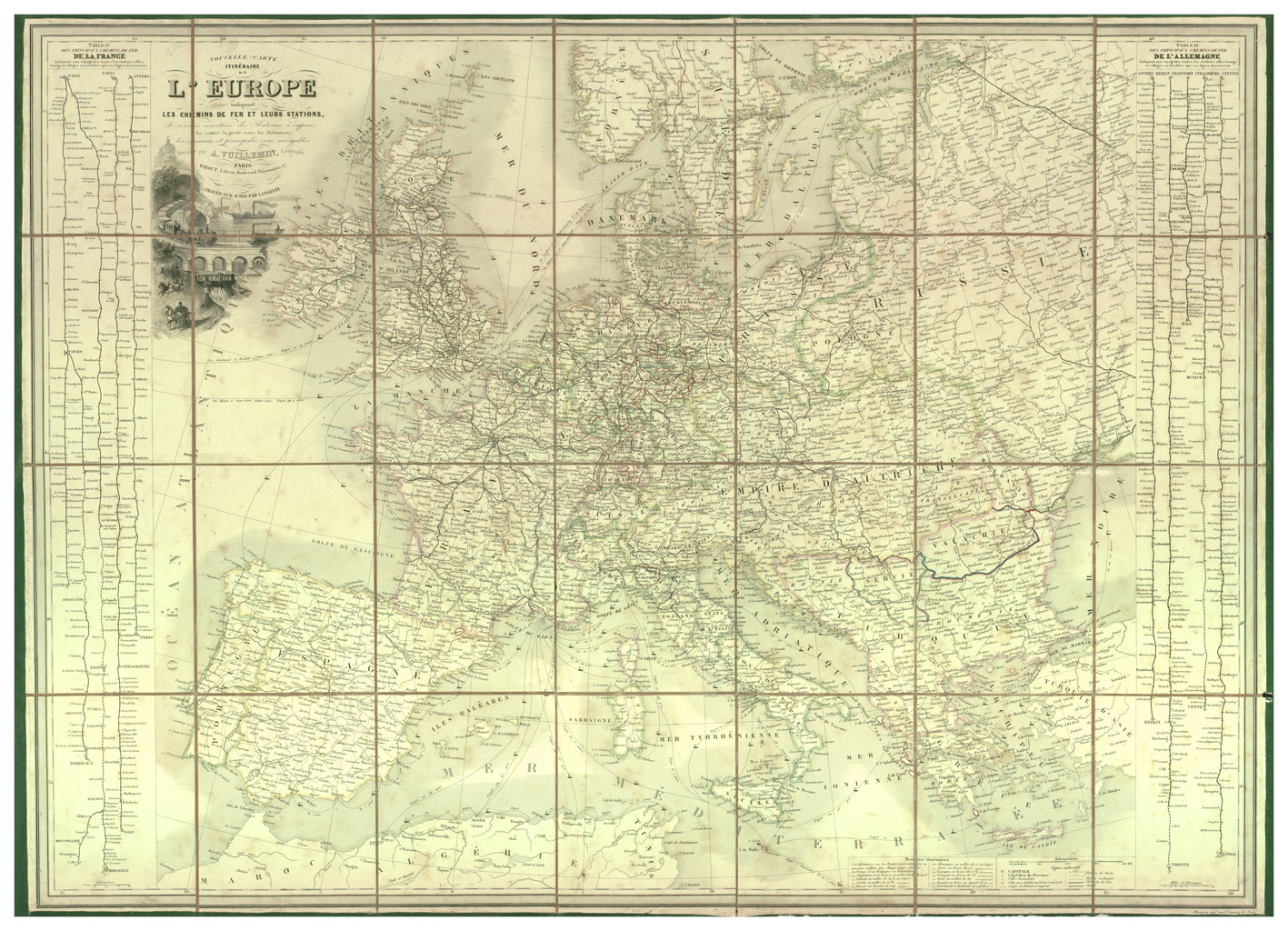 NOUVELLE CARTE ITINERAIRE DE L'EUROPE INDIQUANT LES CHEMINS DE FER LEURS STATIONS etc...