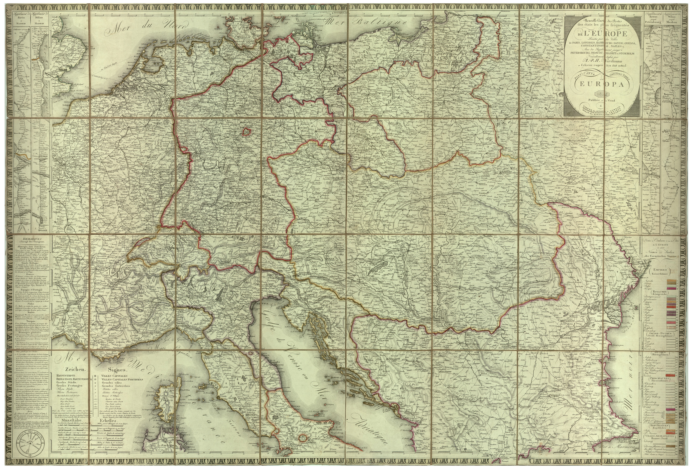 "EUROPA – CARTE GENERALI Autore A.P.H. Nordman Fogli 1 su tela a stacchi incisione su rame rappr.orogr.tratteggio. Inventario SBN 7-1738270 "