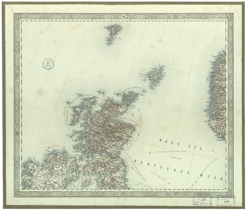 "EUROPA - CARTE GENERALI Autore Joseph Scheda Fogli 26 stampa policroma rappresentazione orografica a tratteggio. Inventario SBN 7-1190"