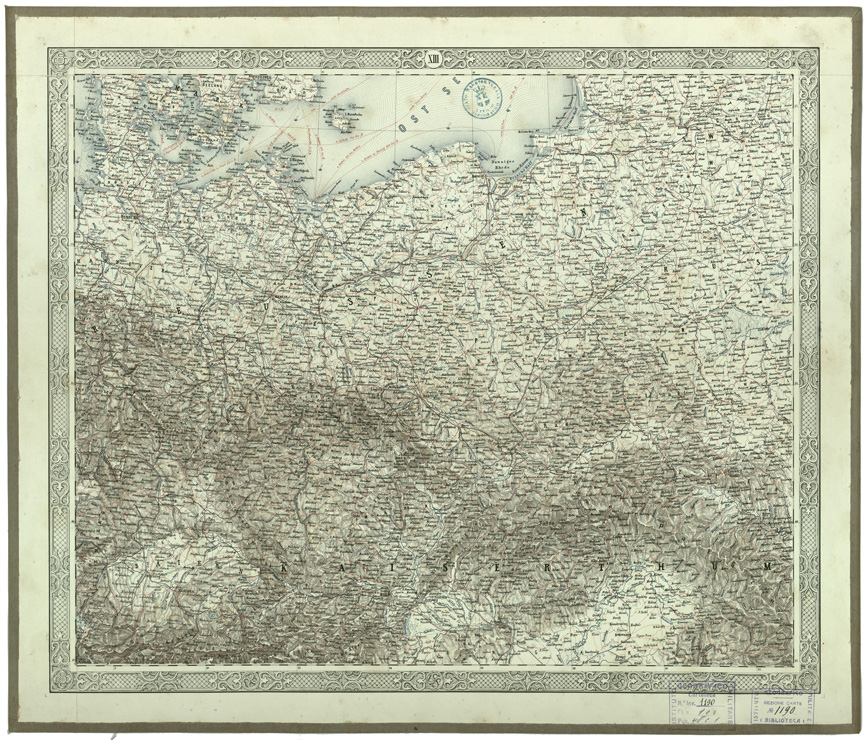 "EUROPA - CARTE GENERALI Autore Joseph Scheda Fogli 26 stampa policroma rappresentazione orografica a tratteggio. Inventario SBN 7-1190"