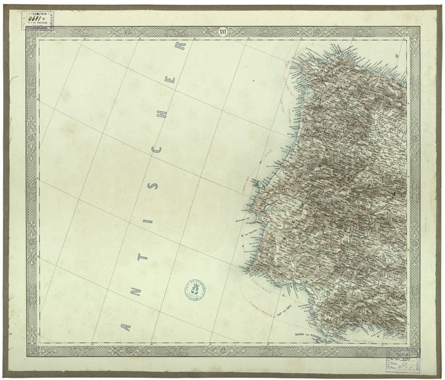 "EUROPA - CARTE GENERALI Autore Joseph Scheda Fogli 26 stampa policroma rappresentazione orografica a tratteggio. Inventario SBN 7-1190"