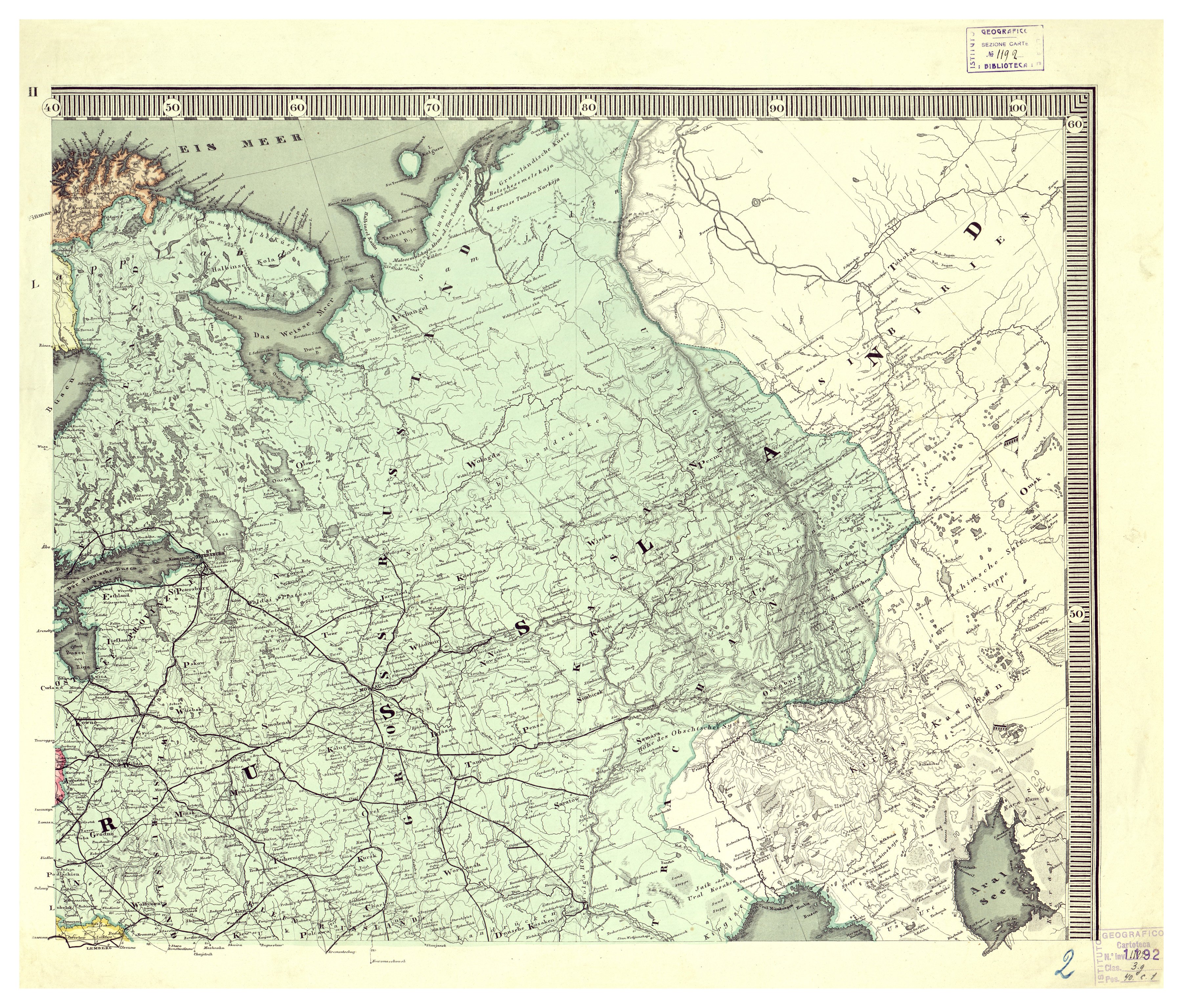 "EUROPA - CARTE GENERALI Autore Petermann Fogli 4 stampa policroma rappresentazione orografica a tratteggio. Inventario SBN 7-1192 "