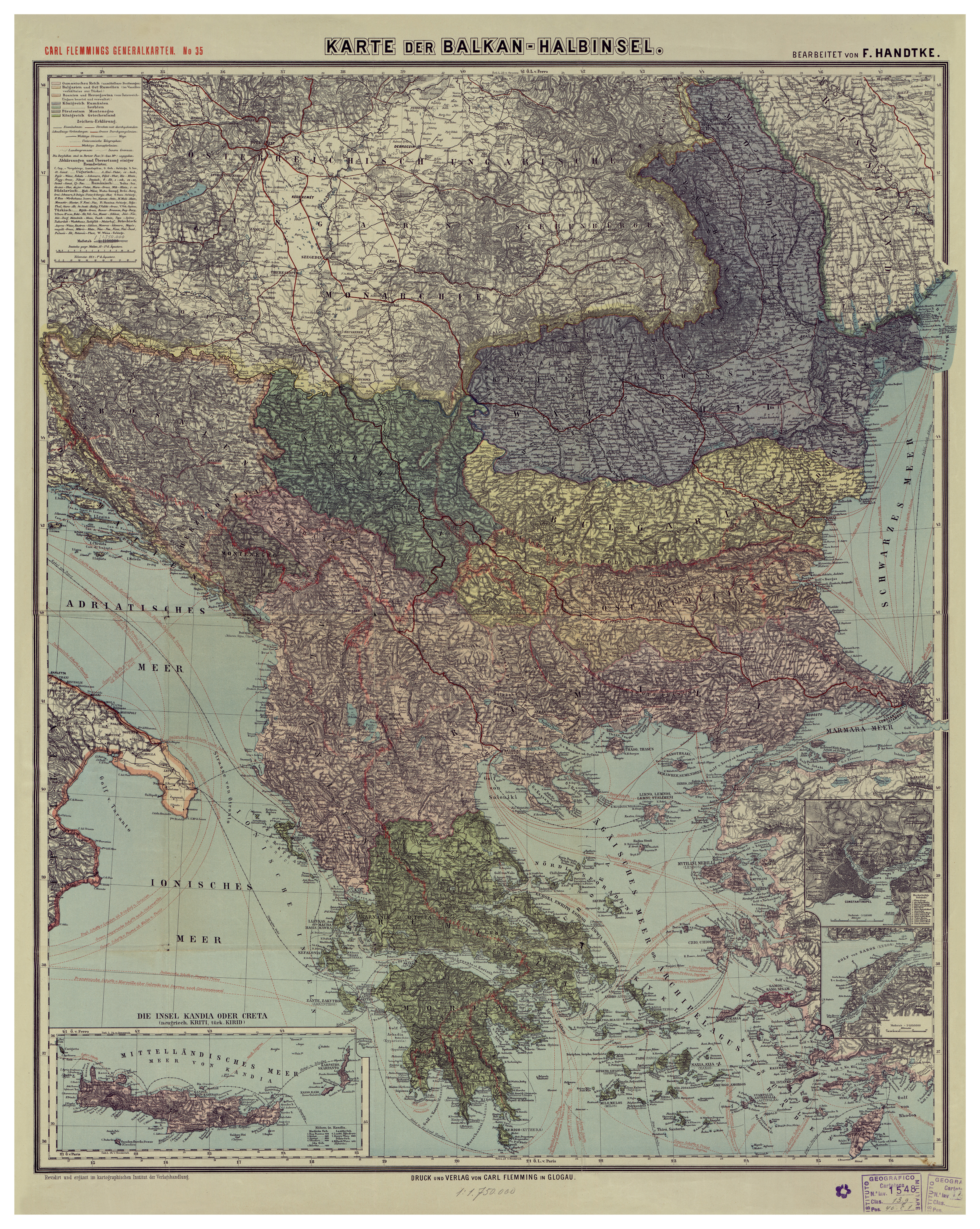 "EUROPA - CARTE GENERALI Autore Handtke Fogli 2 stampa policroma rappresentazione orografica a tratteggio. Inventario SBN 7-1548"