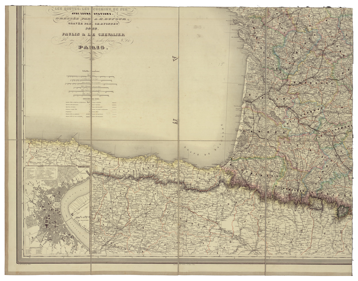 "FRANCIA Autore: Dufour Fogli 4 stampa policroma rappresentazione orografica a tratteggio. Inventario SBN 7-174036"