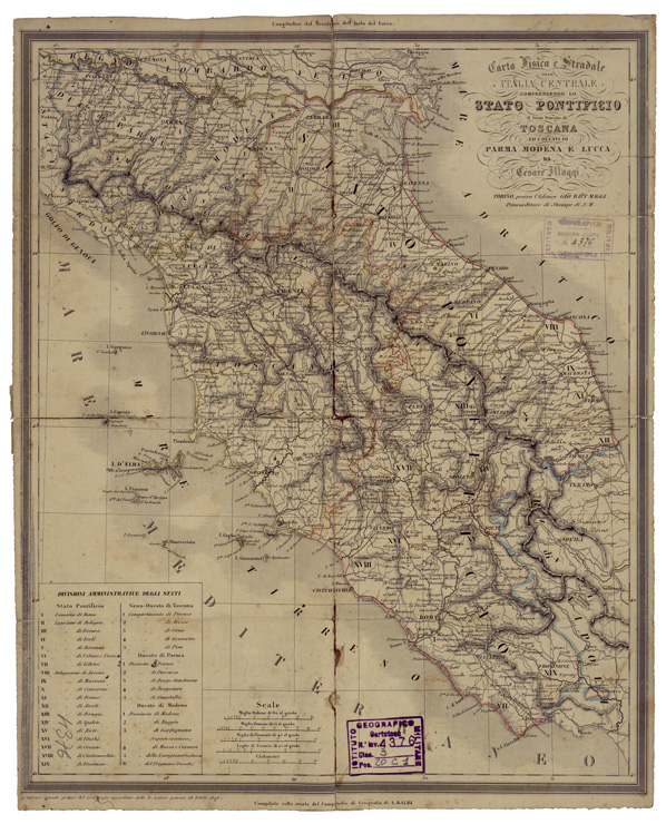 "Autore Maggi Fogli 1 stampa policroma rappresentazione orografica tratteggio. Inventario SBN 7-4376"