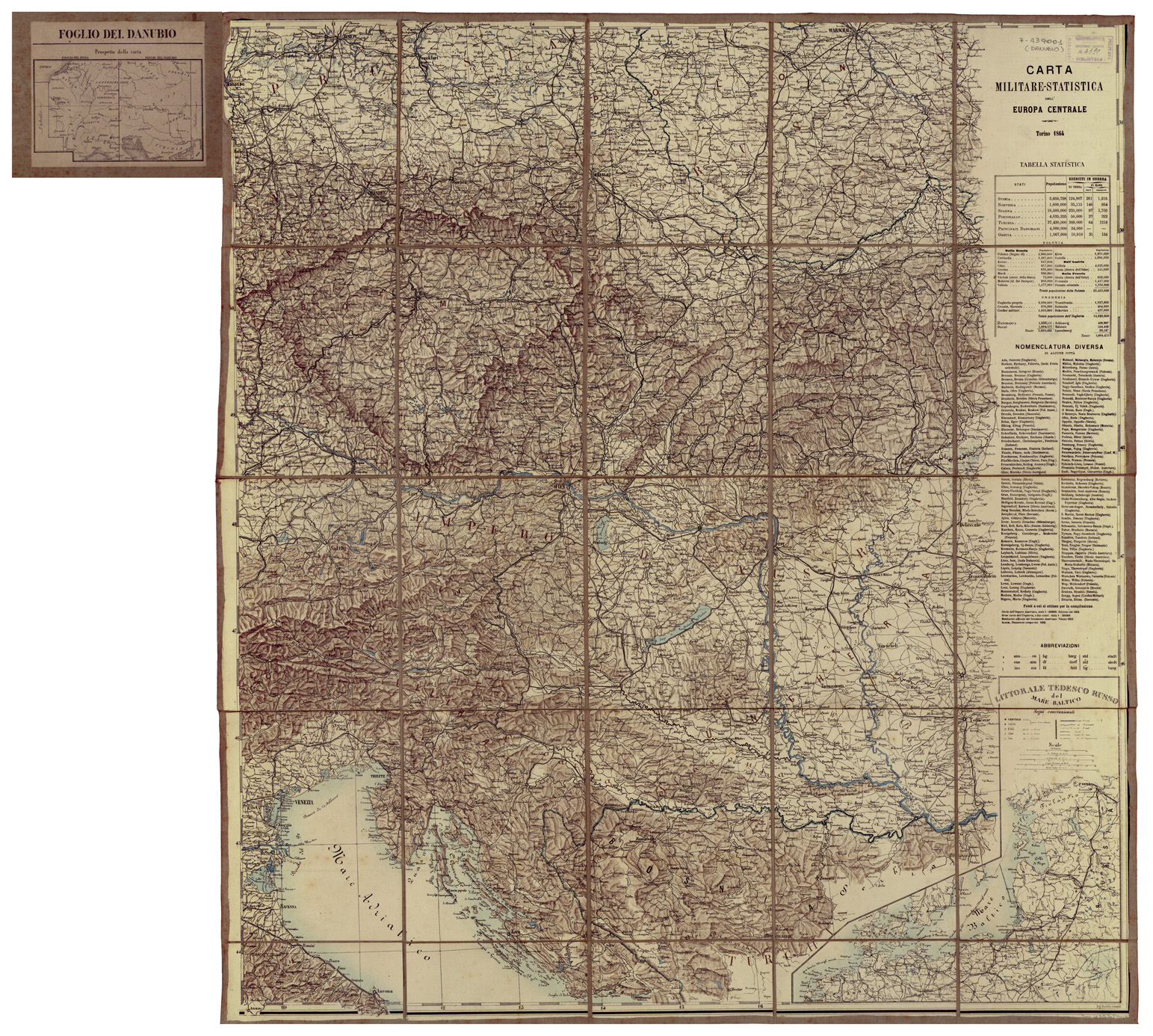 CARTA MILITARE STATISTICA DELL'EUROPA CENTRALE ETC... - FOGLIO 1 DEL DANUBIO