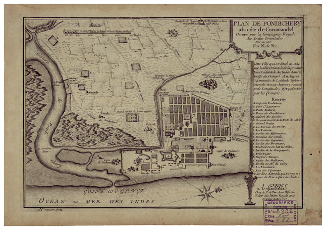 PLAN DE PONDICHERY A' LA COTE DE COROMANDEL OCCUPE' PAR LA COMPAGNIE ROYALE DES INDES ORIENTALES