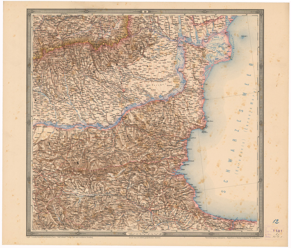"EUROPA - CARTE GENERALI Autore: Schlacher Fogli 13 - (del foglio VI esiste anche una copia) Stampa policroma, rappresentazione orografica a sfumo, grafia in lingua tedesca. Inventario SBN 7-1191 "
